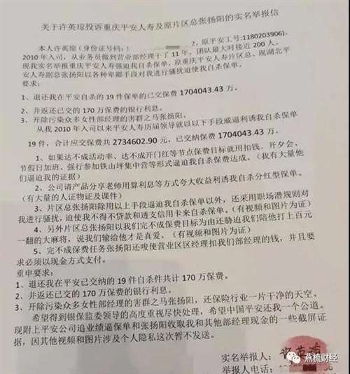 就说说这两天被锤爆的平安员工实名举报事件吧。