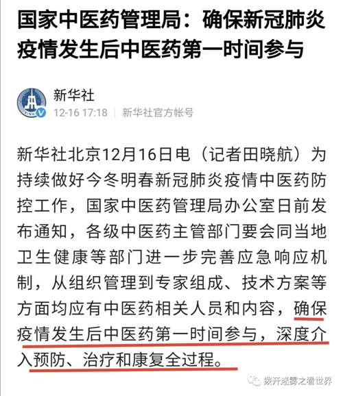 现在可能很多人都知道了,中国治疗新冠病毒的成功经验是中医为主的中西医结合。