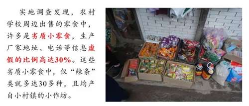 调查发现了农村儿童五大食品营养和安全问题:第一个是吃劣质的廉价的零食,偏好不健康的零食;第二个零食代替正餐;第三个不重视饮食卫生,没有良好的卫生和安全习惯;第四个是用餐不规律;第五个是有偏食的现象。另外,相对富裕地区的农村儿童,膳食也不均衡,肥胖的发展速度非常快。