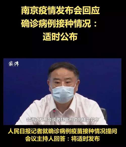 我们不会忘记,南京有关部门在回答记者就确诊病例疫苗接种情况的提问时,曾这样说:很快马上就做出安排,会通过发布会或其他形式向社会公布!