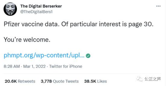 (三)3月1日,美国推特曝光FDA和辉瑞公司惊天丑闻