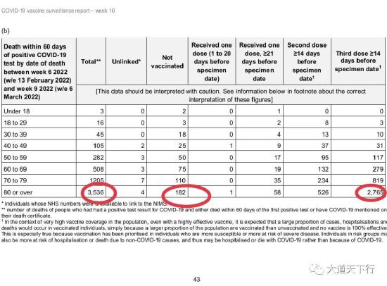 那我们看看英国2022年3月10日发布的新冠疫苗监测报告,2022年2月13日至3月6日期间: