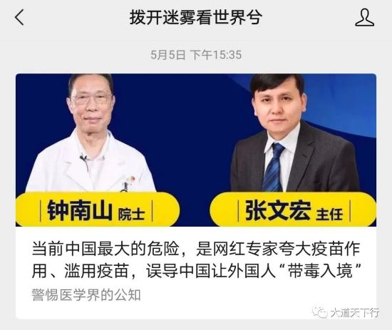 我们指出,网红专家夸大疫苗的作用非常危险,是在误导中国。