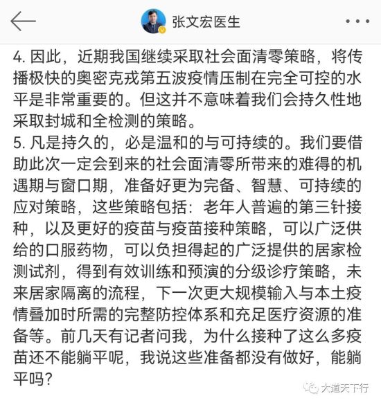 2022年3月14日,张文宏继南京疫情时半夜提出“与病毒共存”之后,再次半夜发长文。