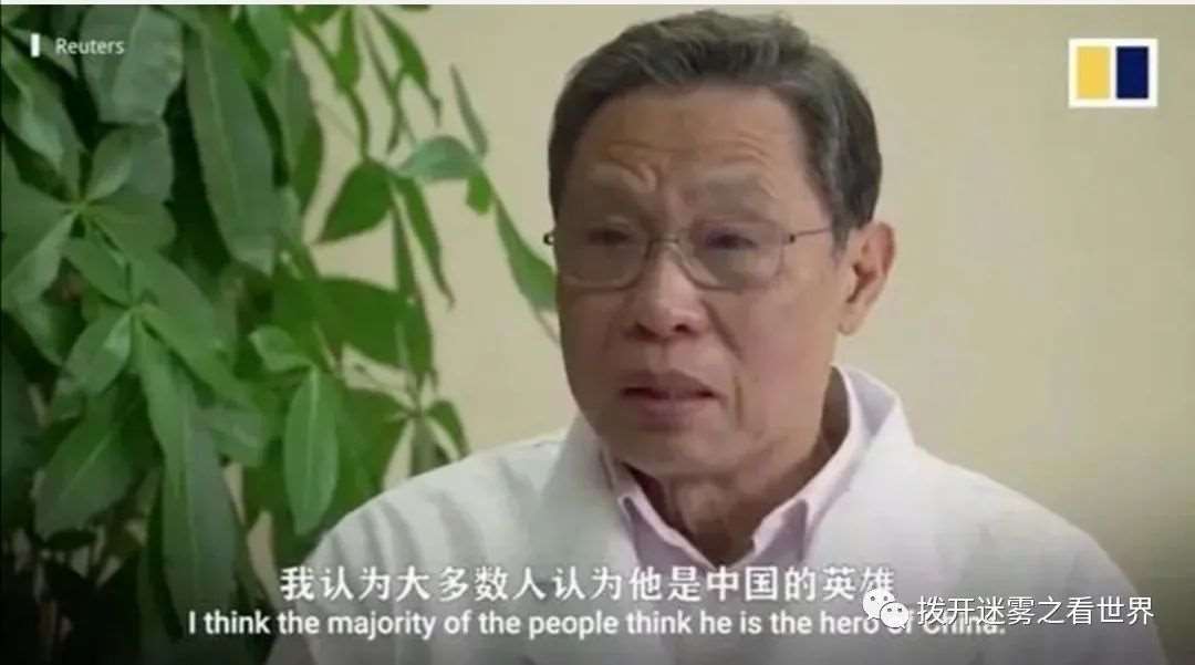 2020年2月11日,钟南山接受路透社专访,称李文亮是英雄。
