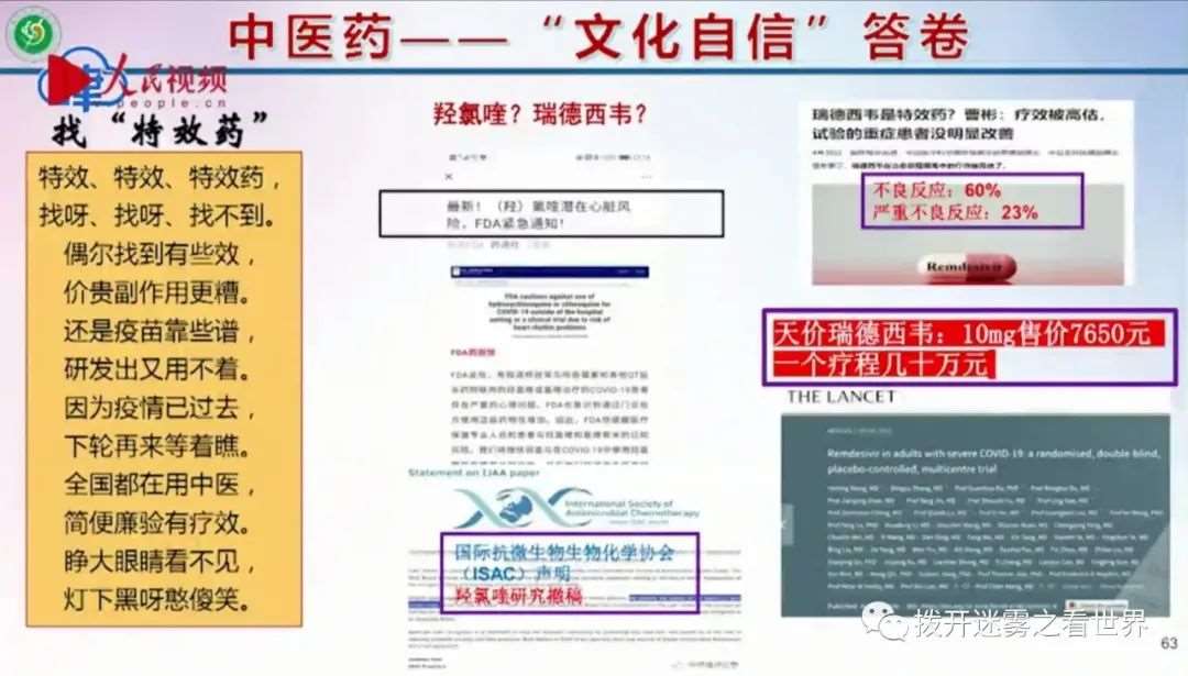 因此,西方医药利益集团必然要攻击中国的隔离抗疫措施,鼓吹“疫苗群体免疫”“与病毒共存”;他们必然要掩盖中国治疗新冠的成功,鼓吹西方的“疫苗”和“特效药”。