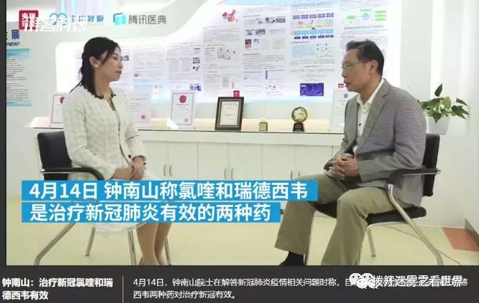 与之相反,到4月14日中国已经用中西医结合战胜疫情的时候,钟南山还在说瑞德西韦和氯喹是有效药物。