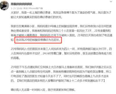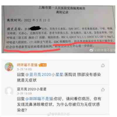 这位博主的妈妈在3月19日晚上核酸异常,21号白天博主本人也被通知其20号的核酸异常,并被确诊为无症状感染者。但据博主本人的描述“今天23号,我前两天的发烧有所缓解…”,这意思应该是,博主在21号、22号的时候有发烧的症状。——既然有症状,那为什么会被定为“无症状感染者”?