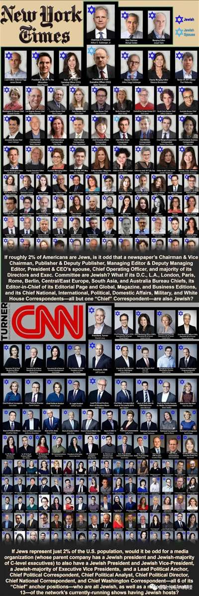 别忘了,前文提到的辉瑞早已启动半个世纪有余的“营销战”,而当今美国的主流建制派媒体,同样被犹太势力深度控制: