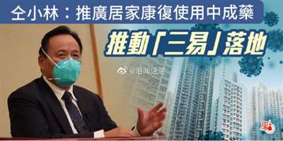 仝小林院士率领的中医专家组到港后,一连4天全面调研了香港使用中医药治疗新冠患者的情况,他认为有一定成效了,下一步要推广居家康复使用中成药。并表示,要针对「三减三重一优先」这个总目标、总原则,来推动「三易」的落地,包括「易懂」、「易行」及「易得」。