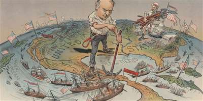 ▲ 19世纪末,美国第25任总统威廉・麦金莱宣称根据上天意旨对西班牙展开战争并夺取其殖民地,将波多黎各、关岛、菲律宾、古巴归于自己的控制之下。