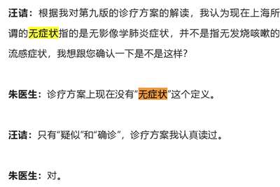 还有上海市疾控中心的朱主任,在接受汪诘采访时,说目前没有对无症状感染者的定义?不知道这位疾控中心的朱主任看没看过《新冠防控方案第八版》?