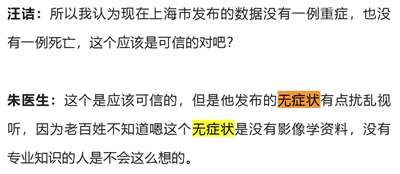 那么我们再回头看呼吁居家隔离的汪诘和朱医生是怎么说的?这两位讲科学的砖家都认为无症状指的是核酸阳性、且没有CT新冠影像学特征,他们完全不知道还有一条无临床表现啊!这算个P的砖家。