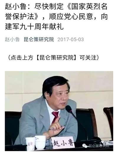 【赵小鲁律师发表尽快制定《国家英烈保护法》建议】