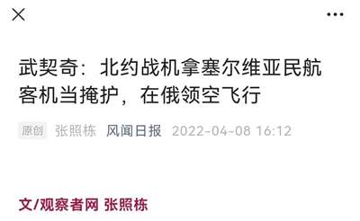 塞尔维亚总统武契奇称,4月6日,一架北约战机拿塞尔维亚民航客机当掩护,进入俄罗斯领空飞行。