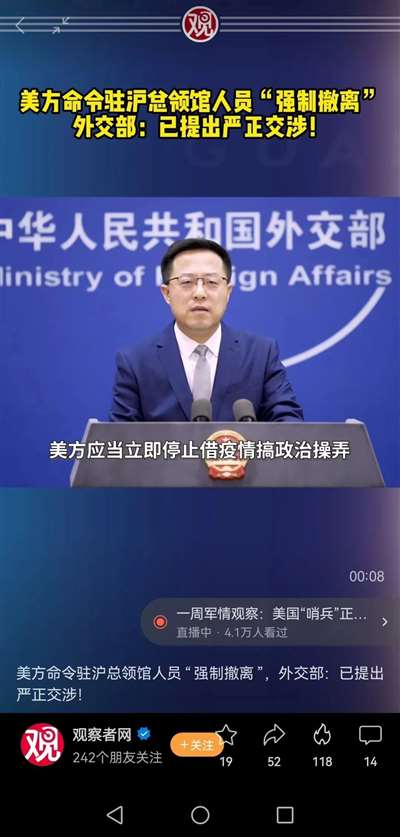 我们外交部也立即对美国“强制撤离”的表演作出了回应,赵同志说:“我们对美方把人员撤离问题政治化、工具化表示强烈不满,坚决反对。已向美方提出严正交涉,美方应当立即停止抹黑中方防疫政策,停止借疫情搞政治操弄,停止对中国污蔑抹黑。 ”