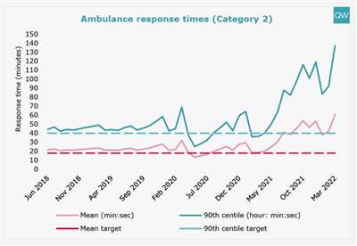 救护车响应速度也打破纪录。2022年3月份,紧急事故的救护车平均响应滞后时间为1小时1分,比目标值(18分)高了三倍;