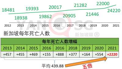 去年有人用“仰卧起坐”来形容新加坡的防疫措施,的确不失为生动和贴切。回过头检视的话,新加坡在过去三个月的新冠新增死亡已经达到过去两年的一半多;而在仰卧起坐的2021年,新加坡的总体死亡人数比前年多2220人,是过去八年平均值的五倍,增幅大大超过同样实行“动态清零”的2020年。很多人并非直接死于新冠,却死于新冠流行所导致的失业、收入不稳定以及正常医疗资源的被挤兑。