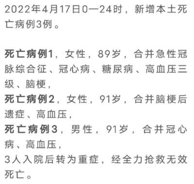 今天,上海公布了3例死亡病例,一例89岁、两例91岁: