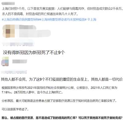 几天前,上海累计感染28万的时候,公布了9例重症,这9例都有基础病且8例老人,某些人阴阳怪气地嘲讽: