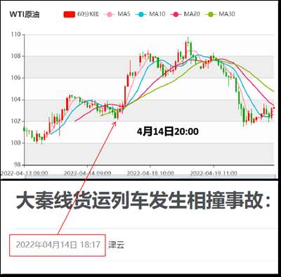 大规模媒体报道出现在4月14日18时左右,而石油市场当晚20时左右出现明显止跌回升。虽然很多媒体把当日石油价格上涨归咎于俄乌战争局势变化,但策辩认为,中国重要能源动脉出问题,绝对也是其中因素之一。