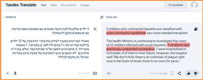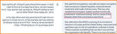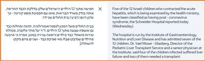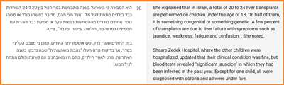 需要肝移植的两名病童年龄只有几个月大小,医院已经对他们做了全面检测(בירור נרחב),但没能发现新冠病毒之外的病因。