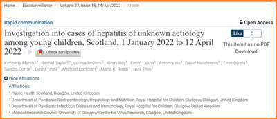 发病率:苏格兰地区历年原因不明的儿童严重肝炎的基线发病率小于每年4例,而现在不到一个月时间内检出了12例(1月份那一例暂且不算),所以发病率妥妥地超标了……