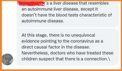 我们只知道这种肝炎可能跟新冠病毒感染相关,
