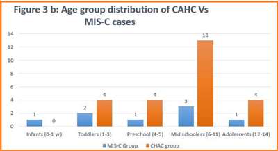 其中蓝色柱子是MIS-C组,橙色柱子则是未知病因组