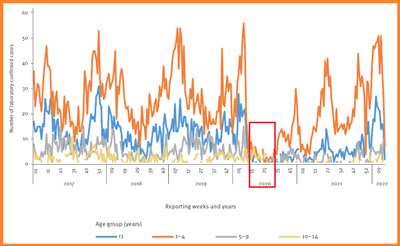 以上是苏格兰地区2017年以来腺病毒感染儿童人数,