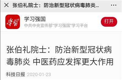 2020年新冠疫情初期,中医界人士就呼吁吸取非典教训,让中医药第一时间介入。2020年1月23日,张伯礼院士呼吁:防治新型冠状病毒肺炎,中医药应发挥更大作用。