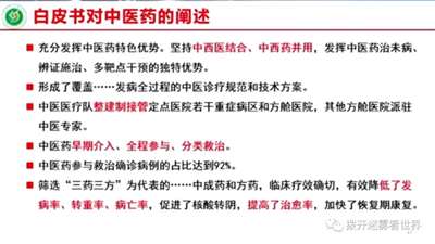 所以我们中医药应该说,这个发挥中医药的重要作用,全国人民看到了,这个白皮书肯定了,是吧,成为历史定论了。