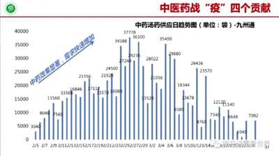 九州通的中药汤药日供应图,效果显著需求快速增加,最高峰一天三万七千袋。