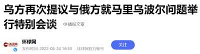 4月20 日,乌克兰政府再次宣布,愿无条件在马里乌波尔与俄方展开谈判。