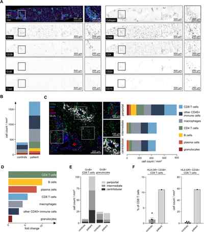 此外,研究人员还在患者的肝脏组织中发现了T细胞和B淋巴细胞、巨噬细胞、粒细胞和浆细胞的浸润。研究者表示,对照未患病者的肝脏组织,他们观察到这名52岁患者肝脏内免疫细胞增加了5.3倍。