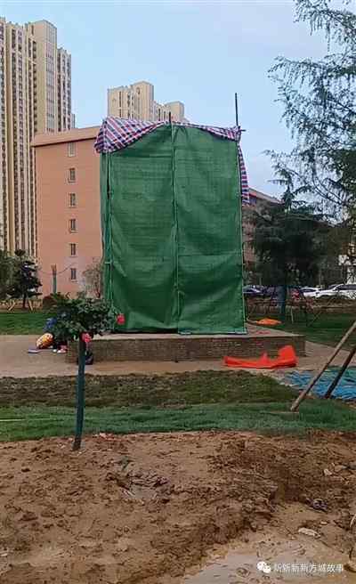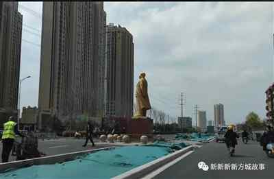 今天一大早就听南阳的朋友讲:南阳市区,光武路口老柴油机厂的毛主席像,在昨天深夜一点多——还有很具体的说法是12点26分,已连夜搬迁到了原址东200米、正在修建的一个街口小花园里。据说,搬到新址的毛主席像目前还被隔离网板罩着,待基座和周边设施完工后,可能会有一个揭幕“仪式”。