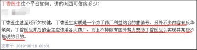 丁香医生能做到那么大的一个平台,它充当的不过是资本的话筒,说的话有什么公正与权威,都是利益在驱使。