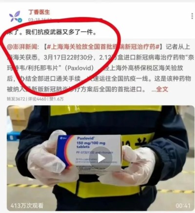 而辉瑞在国内上线首批新冠特效药当天,丁香医生更是全网大力宣传,仅微博的播放量就高达413万。