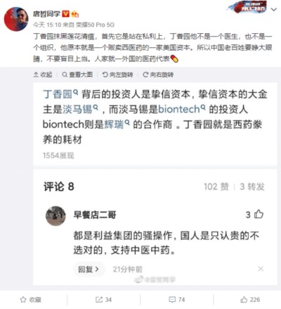 丁香医生多轮融资背后都是美国资本,同时和默沙东辉瑞深度合作,所以“中医黑”太正常不过,因为都是拿人钱财替人办事。