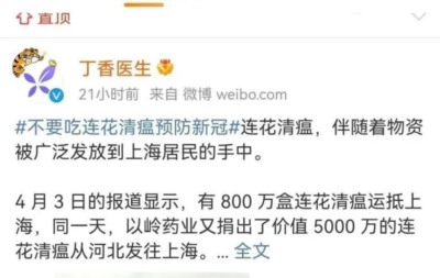 4月17日凌晨,丁香医生深夜发布了一篇名为“不要吃连花清瘟预防新冠”的微博,迅速获得了1.8万的评论和30万的点赞。