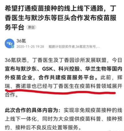 早在2020年疫情爆发后,丁香园就宣布与国外医药巨头辉瑞、赛诺菲、默沙东、GSK等建立合作。双方一致将推动实现非免规疫苗接种的线上线下一体化。