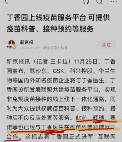 一是上文所提到的丁香医生背后是美国资本,而且丁香医生和辉瑞、默沙东这些国外医药巨头有着密切的合作关系。