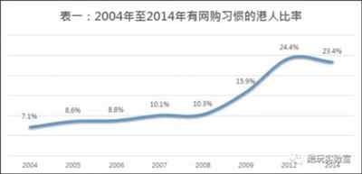 有人统计过2004年-2014年香港网购习惯的港人比率,发现10年来从未超过25%。