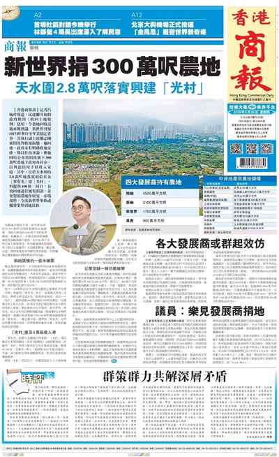 2019年,郑裕彤的长孙也慷慨解囊,表示将以象征性的1港币租金,捐出约28万平方米地,来缓解基层居住压力。
