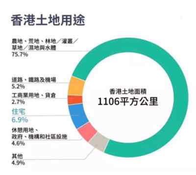 香港的土地面积为1106平方公里,但开发率不足25%,有75.7%的地属于完全未开发的荒地。