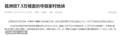 北京单价“地王”,是丰台樊家村地块,折合楼面价为7.5万元/平米;