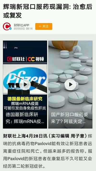 简单来说,就是这药哪怕在欧美都非预期性的使用额度远低于辉瑞的估计,更为麻烦的是,已经有越来越多的病例称自己吃了Paxlovid转阴或退烧后,药停就复发,且持续阳性很久。