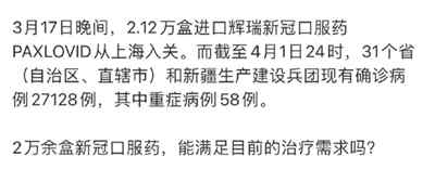 (上图为经济观察报4月初的报道,正值某地封城之际,从字里行间可见2万盒似乎还远远不够,毕竟按他们思路,只要感染和疑似感染就可用)