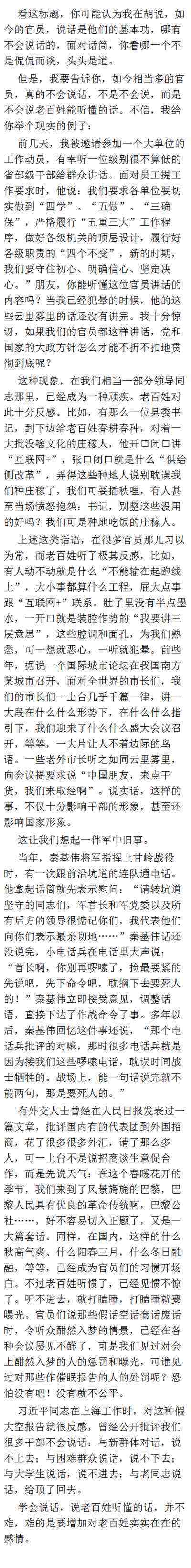 学会说话,说老百姓听得懂的话,并不难,难的是要增加对老百姓实实在在的感情。