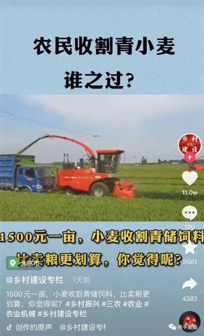 此时的中国小麦的生长正进入后期,距离收获还有一段距离,但是最近开始发生了奇怪的小麦青储的现象,而且价格达到1500—1600元一亩,折算成熟小麦(亩产量)按去年1.21元一斤,就是1200斤左右的三等小麦的价值。